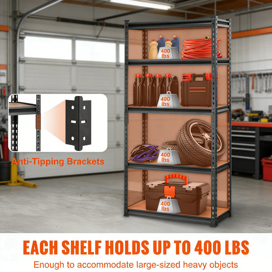 5-Tier Heavy Duty Storage Rack, 2000lbs Capacity & Adjustable
