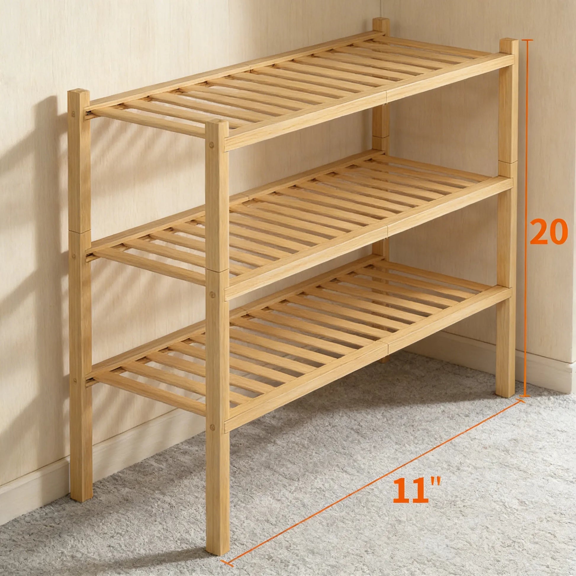 3-Tier Bamboo Shoe Rack, Natural & Stackable, Space-Saving Freestanding for Small Areas