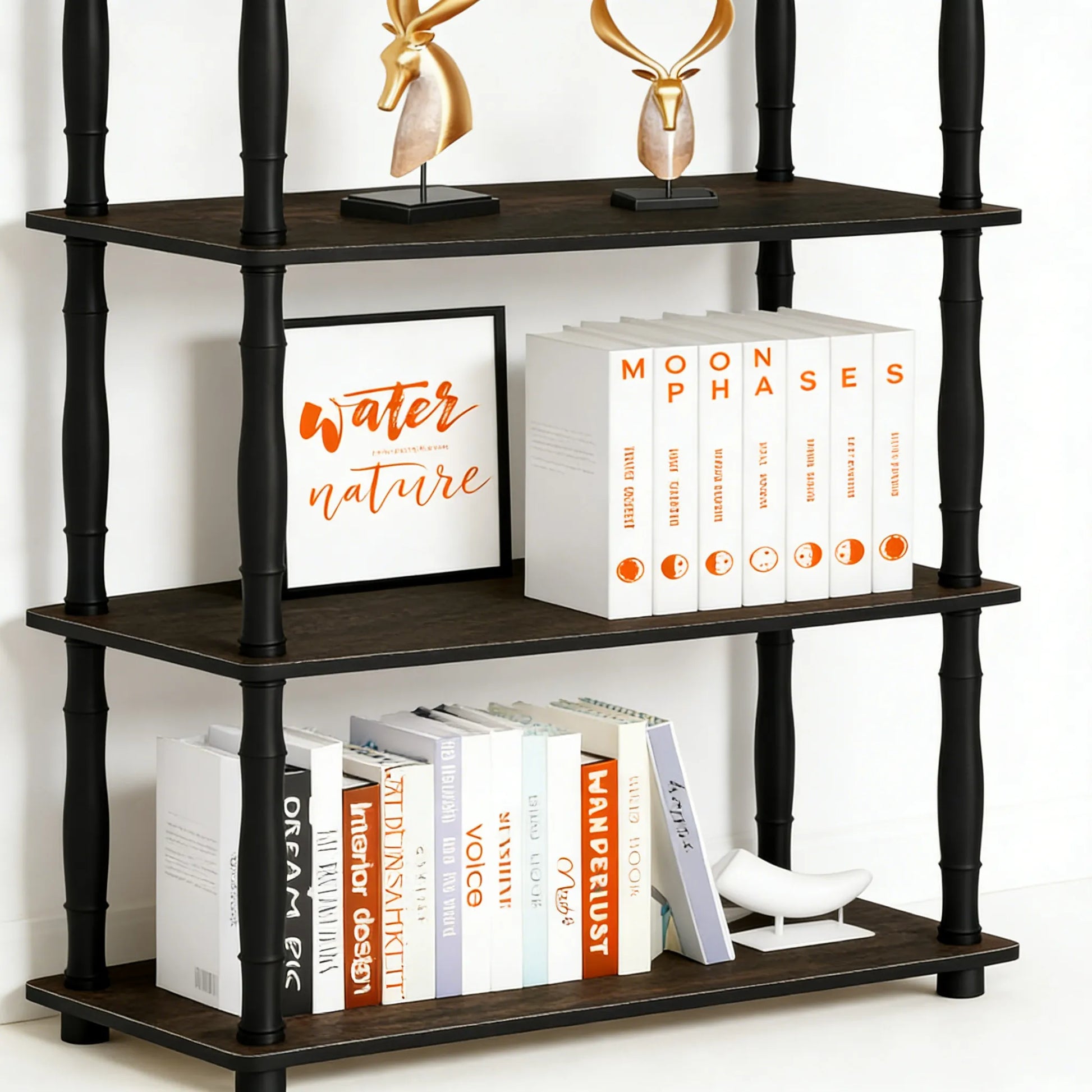 Classic Tube 4-Tier Shelf, Espresso/Black Finish, Ideal for Multi-Scene Storage & Display